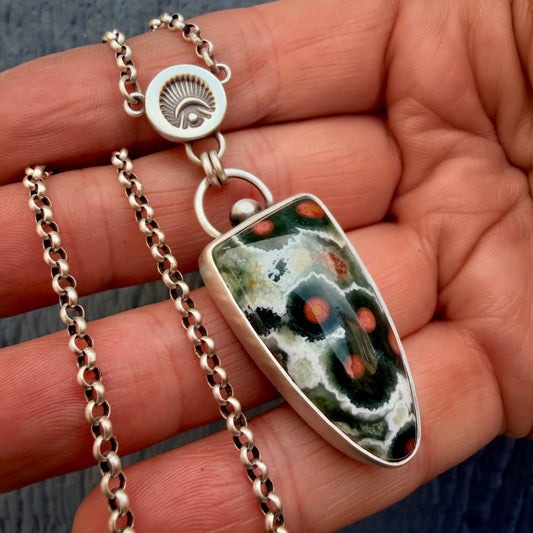 Ocean Jasper Hand Stamped Amulet Necklace-Sterling & Fine Silver