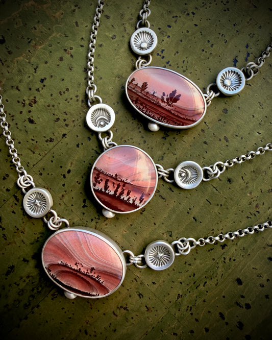 Mimbres Valley Apache Dendritic Rhyolite Hand Stamped Necklace-Sterling & Fine Silver
